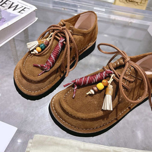 真皮复古袋鼠鞋乐福鞋女25秋季新款miu系勃肯鞋串珠流苏厚底单鞋