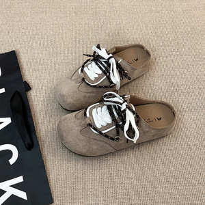复古百搭时尚设计感小众包头半拖鞋女秋冬季系带外穿休闲厚底拖鞋