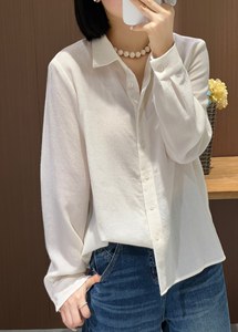 三色羊毛面料纯色简约宽松亲肤人字纹单排扣秋季长袖百搭衬衫上衣