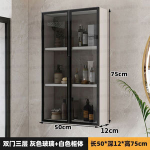双门75cm高 肤感灰柜体+灰色玻璃-深度12cm【送货上楼】