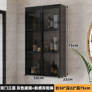 双门75cm高 肤感灰柜体+灰色玻璃-深度22cm【送货上楼】