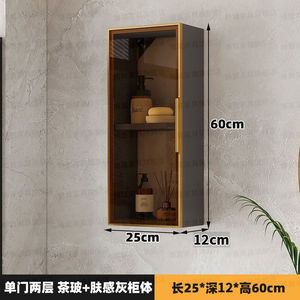 单门60cm高 肤感灰柜体+灰色玻璃-深度12cm【送货上楼】