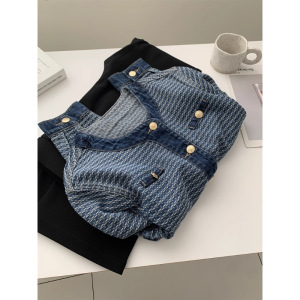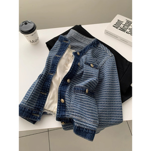 洋气复古小香风牛仔外套女时髦显瘦圆领小金扣短款上衣25秋季开衫