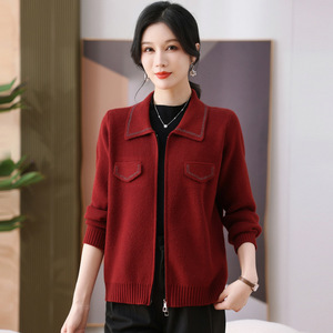 新款洋气毛衣女外套中老年上衣时尚妈妈装翻领针织衫开衫春装