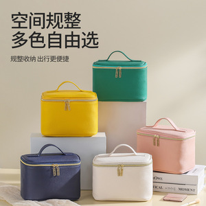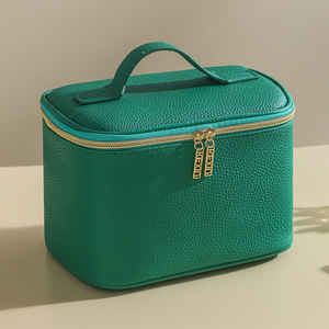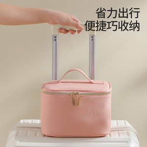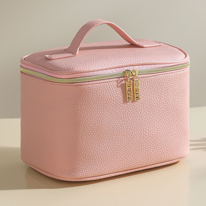 PU荔枝纹皮革化妆包大容量手提跟妆包便携旅行收纳包洗漱包