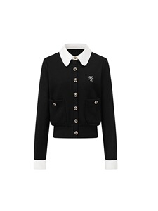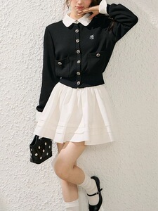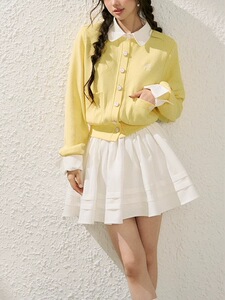 H2AN1 STUDIO丨撞色拼接假两件针织开衫毛衣外套木耳边百褶裙套装