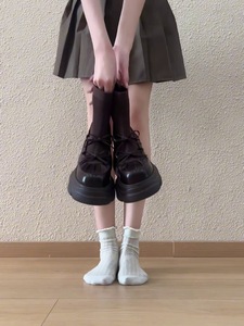 羊皮版~2025新款复古风方头厚底弹力靴女款浅口单鞋松紧带马丁靴