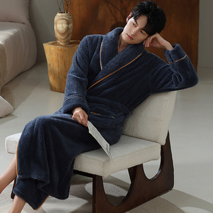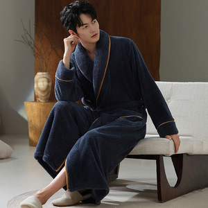 长款睡袍男款珊瑚绒保暖浴袍深色秋冬长款时尚简约家居服2025新款