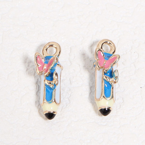 合金滴油立体彩色蝴蝶铅笔小吊坠 DIY手工饰品挂件配件材料