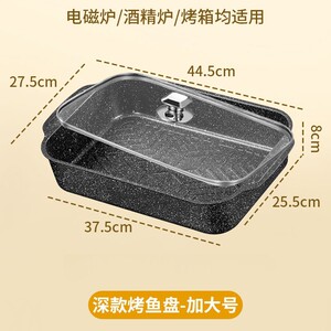 加大号深盘-碳钢不沾烤鱼盘+(钢化玻璃盖)【特厚不变形/电磁炉燃气通用】
