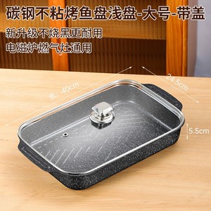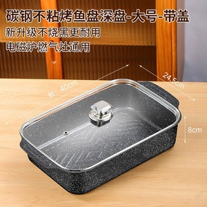 大号深盘-碳钢不沾烤鱼盘+(钢化玻璃盖)【特厚不变形/电磁炉燃气通用】