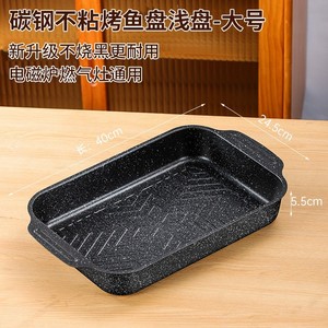 加大号浅盘-碳钢不沾烤鱼盘【特厚不变形/电磁炉燃气通用】
