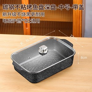 中号深盘-碳钢不沾烤鱼盘+(钢化玻璃盖)【特厚不变形/电磁炉燃气通用】