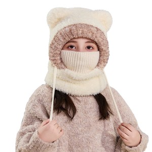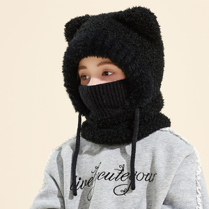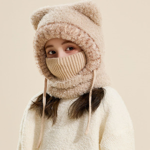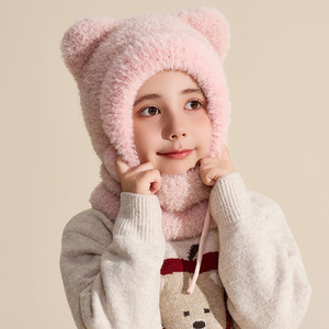 冬季拼色保暖雷锋帽儿童户外防风寒围脖连体帽男女宝宝毛绒脖套帽