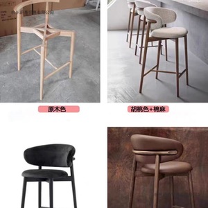 现代实木吧台椅北欧厨房椅子家用小型餐椅靠背酒店可坐休闲高脚椅