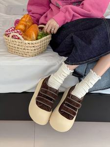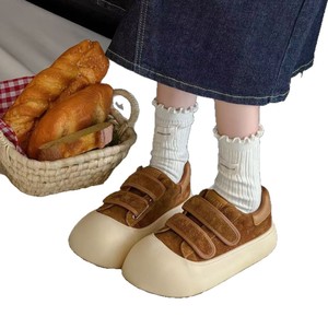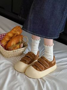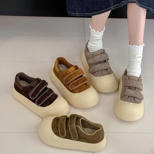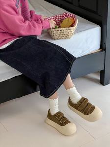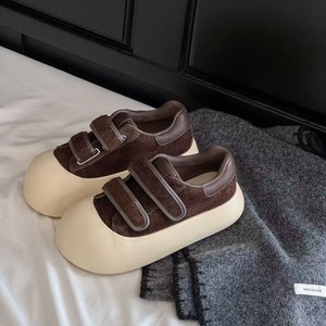 真皮丑萌娃娃头板鞋女加绒2025秋冬新款欧货魔术贴厚底运动休闲鞋