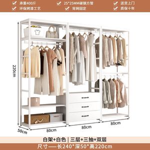 家用步入式金属衣柜卧室衣帽架落地挂衣架衣帽间组合立式铁艺架子