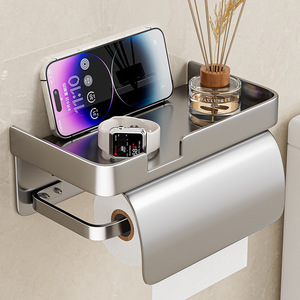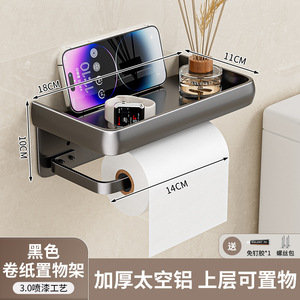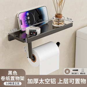 厕所卷纸架太空铝免打孔卫生间纸巾手机挂架可挡水壁挂抽纸盒置物
