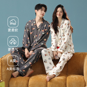 【抗菌拉架棉】新款情侣睡衣春秋长袖条纹休闲大码女士家居服套装
