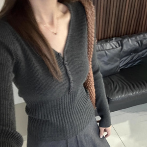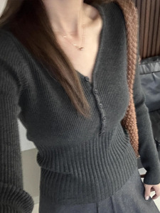 工厂现货韩系V领针织打底衫女内搭2025年秋冬季新款长袖毛衣上衣