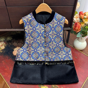 2025早秋新款新中式织金团花提花马甲小流苏设计立领坎肩时尚马夹