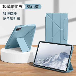 【Y折+3折横竖支撑】【迷雾蓝】【软壳一体磁吸带搭扣】