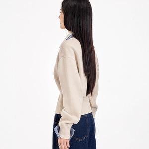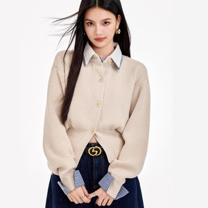 G1859假两件衬衫领针织衫毛衣女时尚秋冬穿搭收腰上衣温柔宽松