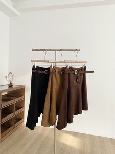 韩版秋冬中性风高腰麂皮绒中长裙女时尚不规则潮辣妹裙送腰带3色