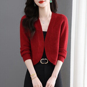 秋季高腰针织外套女短款秋装2025年新款外搭小款开衫毛衣春秋洋气