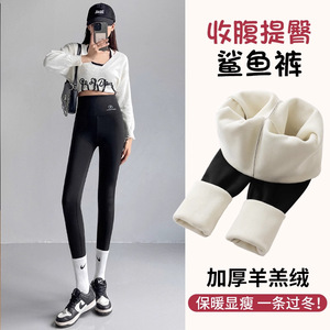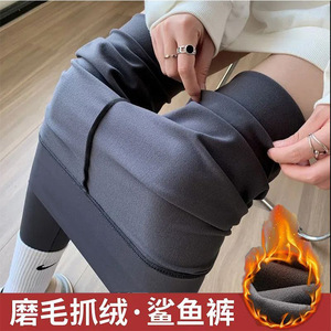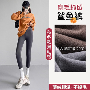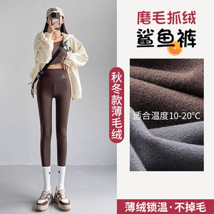 磨毛抓绒鲨鱼裤外穿秋冬保暖德绒高腰收腹瑜伽薄绒发热打底裤女士