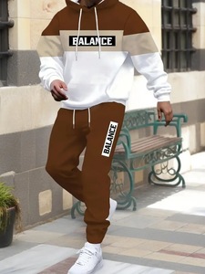 工厂直销2025跨境爆款简约英文字母连帽衫3D数码印花卫衣卫裤套装