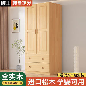 实木衣柜全实木儿童衣柜家用卧室简约松木柜子抽屉对开门单人衣橱