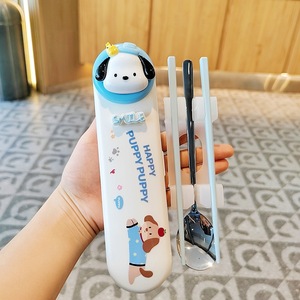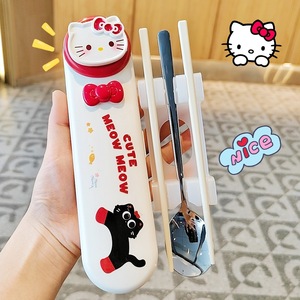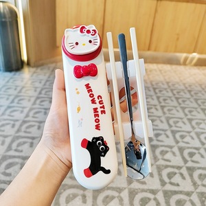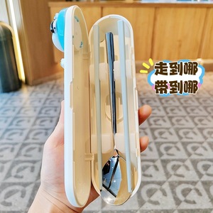 304不锈钢筷子勺子套装便携餐具盒上班族小学生收纳盒餐具二件套