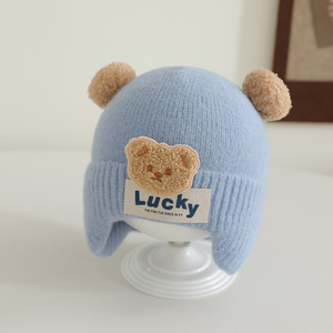 男童可爱卡通护耳针织帽子秋冬季女童宝宝加厚保暖毛线帽婴儿防风