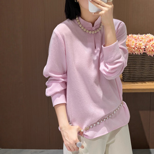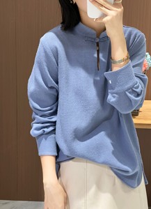 南油2025早秋款设计感领口盘扣中式立领羊毛上衣单穿打底超美衬衫