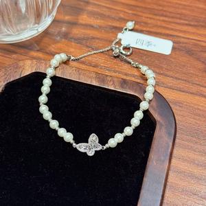 抖音热销复古珍珠手链轻奢设计高级饰品精致甜美蝴蝶手饰百搭手链