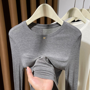 灰色小圆领针织打底衫女2025新款薄款叠穿洋气内搭针织衫女
