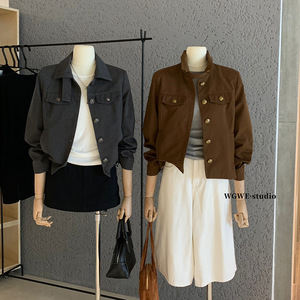 WGWE7043美式复古短款开衫休闲小个子工装夹克外套薄款百搭上衣