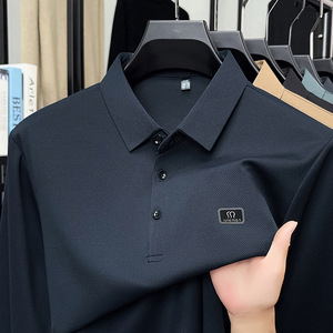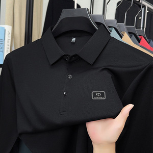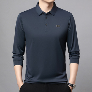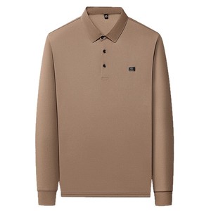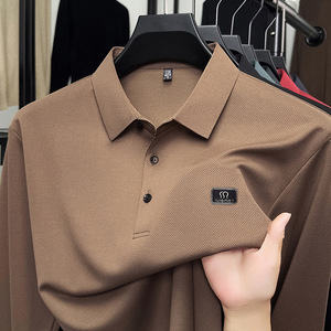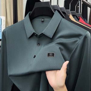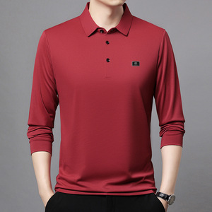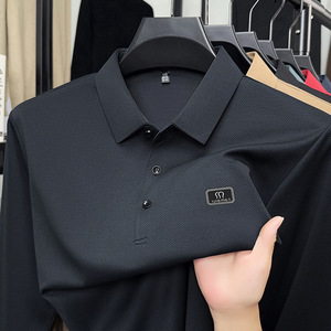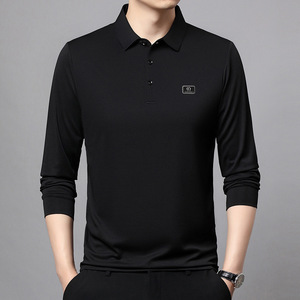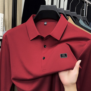 新款休闲翻领长袖polo衫打底纯色中年t恤商务休闲男士宽松上衣
