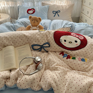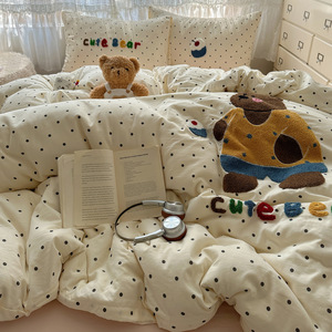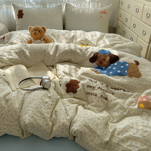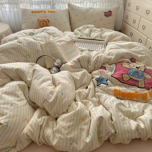 A类纯棉毛巾绣床上用品四件套ins卡通全棉床单被套学生宿舍三件套