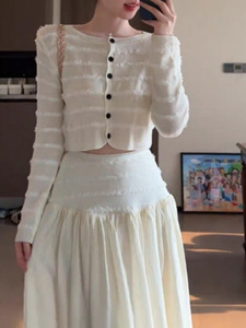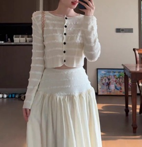 小香风气质修身条纹针织上衣半裙女装2025秋新款淑女高级两件套