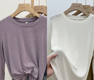 羊绒软糯面膜薄款T恤上衣女宽松长袖2025秋季新款圆领内搭打底衫