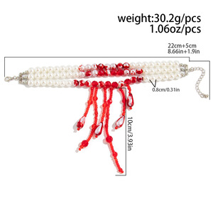 跨境欧美万圣节项链女暗黑哥特血腥血滴流苏仿珍珠多层叠戴锁骨链