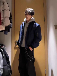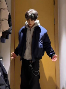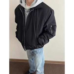 复古美式飞行员夹克男潮痞帅cleanfit翻领工装棒球服百搭情侣外套