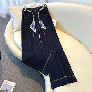 阔腿微喇牛仔裤女2025年春秋季新款深蓝色高腰垂坠感遮跨直筒长裤