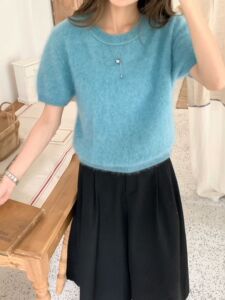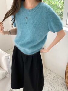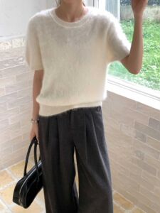 嘉织丨羊毛拉绒高质价比 秋季韩系穿搭拉短袖上衣C809