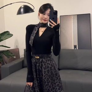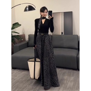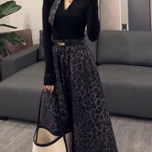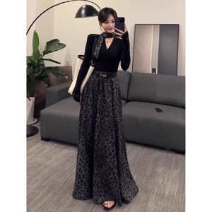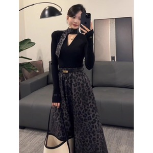 韩系穿搭气质休闲时尚套装女2025年春秋新款上衣豹纹半身裙两件套