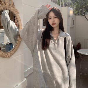 2025新款美式小众polo领卫衣秋季宽松套头上衣中长款外套女装学生