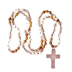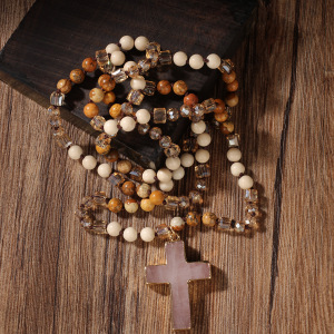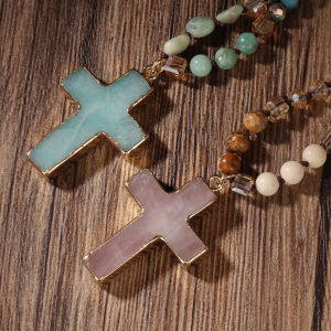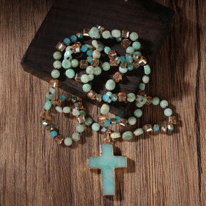跨境毛衣链长款项链天河石粉水晶十字架吊坠项饰工厂批发