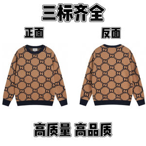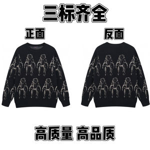 2025春秋新款潮牌字母满身logo圆领针织毛衣男女款宽松休闲上衣【